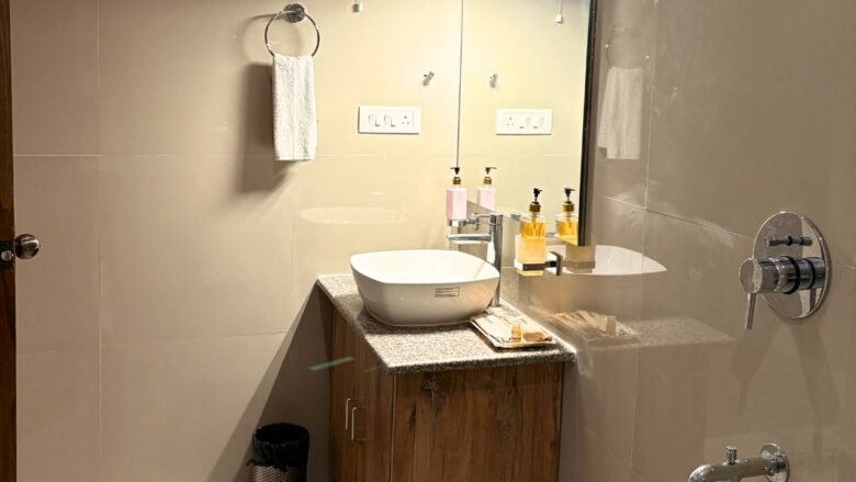 Modern fittings, a spacious shower, 24×7 hot & cold water, fresh towels, and quality toiletries for a clean, comfortable experience.