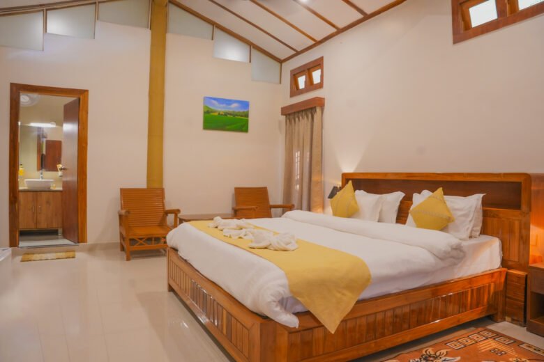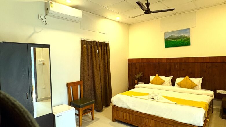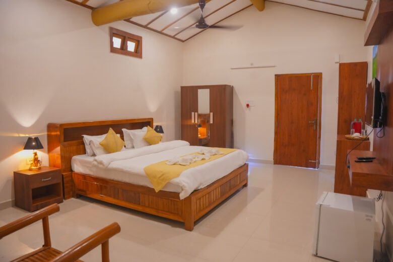 This ethnic-style deluxe room at Ethnic Village Resort blends traditional charm with modern comfort. Crafted with wooden interiors and earthy tones, the room offers a peaceful village-inspired ambiance.