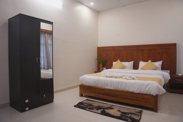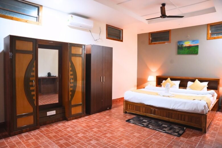 This ethnic-style deluxe room at Ethnic Village Resort blends traditional charm with modern comfort. Crafted with wooden interiors and earthy tones, the room offers a peaceful village-inspired ambiance.