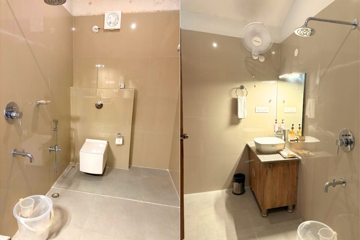 Modern fittings, a spacious shower, 24×7 hot & cold water, fresh towels, and quality toiletries for a clean, comfortable experience.